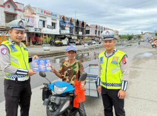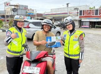 Ditlantas Polda Sulbar Sebar Leaflet, Imbau Pengendara Tertib Helm dan Keselamatan Lalu Lintas