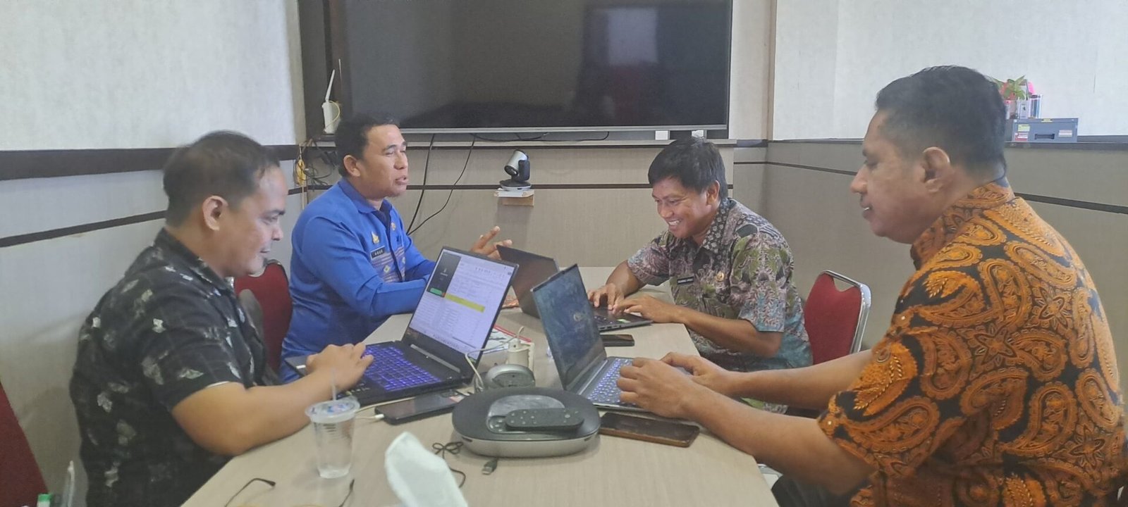 Suasana pertemuan koordinatif antara Badan Pengelolaan Keuangan dan Aset Daerah (BPKAD) Sulbar dengan Dinas Kepemudaan, Olahraga, Pariwisata, dan Ekonomi Kreatif (Disporaekraf) Provinsi Sulbar.