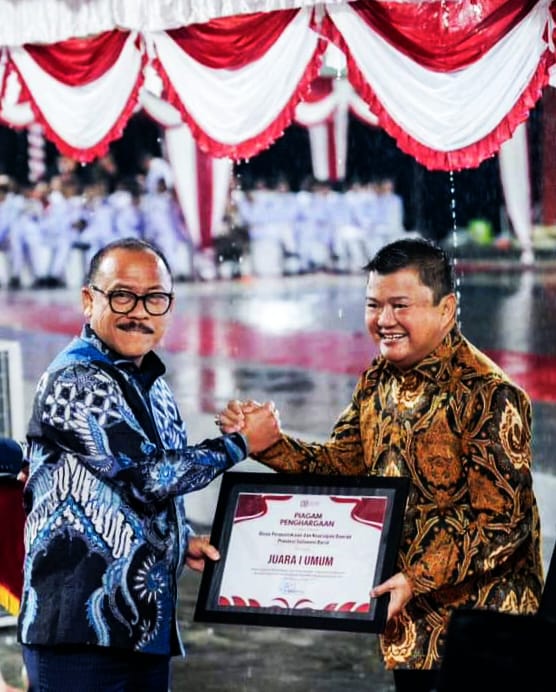 Para juara menerima penghargaan langsung dari Gubernur Sulbar, Suhardi Duka (SDK) dan turut disaksikan Wakil Gubernur Salim S Mengga serta seluruh stakeholder pada malam ramah tamah kemerdekaan di Anjungan Pantai Manakarra, Mamuju, Minggu 17 Agustus 2025.