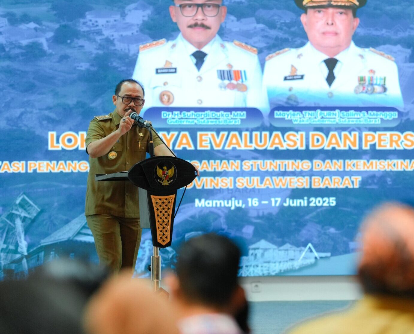Hal itu disampaikan dalam Lokakarya Evaluasi dan Persiapan Implementasi Penanganan Pencegahan Stunting dan Kemiskinan Ekstrem di Ballroom Kantor Gubernur Pemprov Sulbar, Senin, 16 Juni 2025.