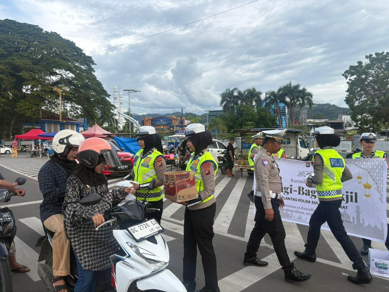 Mamuju – Ditlantas Polda Sulbar memadukan aksi sosial dan kampanye keselamatan berkendara lewat kegiatan bagi takjil kepada pengendara. Pesan ganda mengemuka, Ramadan perlu kebersamaan, jalan raya perlu disiplin.