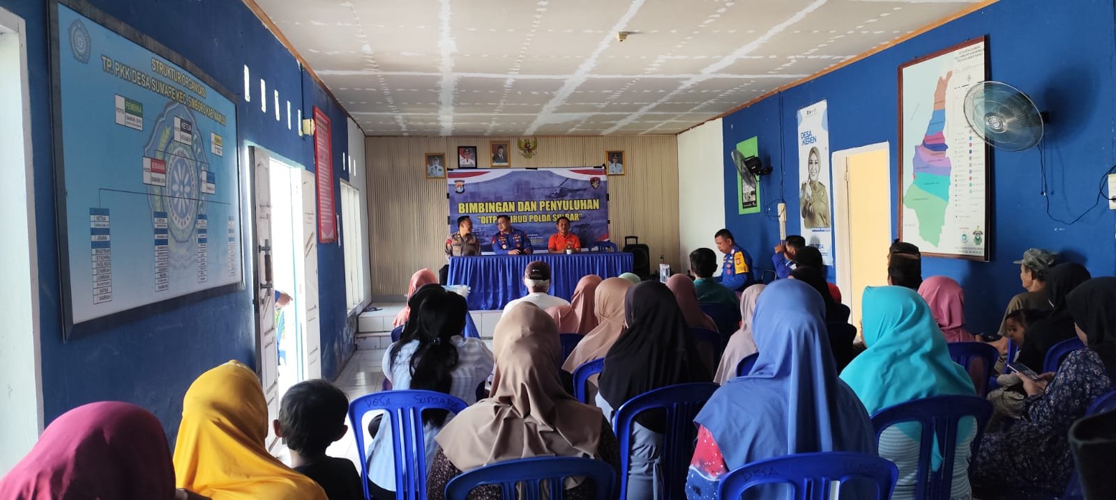 Mamuju – Puluhan masyarakat pesisir dan nelayan di Desa Sumare, Kecamatan Simboro, Kabupaten Mamuju, antusias mengikuti kegiatan bimbingan dan penyuluhan yang diselenggarakan Ditpolairud Polda Sulbar, Jumat (6/3/26).