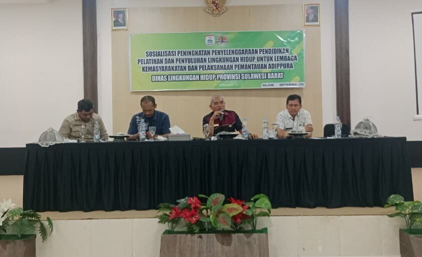 Majene – Dinas Lingkungan Hidup (DLH) Provinsi Sulawesi Barat melaksanakan kegiatan Sosialisasi Pendampingan, Pembinaan untuk Lembaga Kemasyarakatan dan Pemantauan Adipura yang berlangsung di Wisma Yumari Madia, Kabupaten Majene pada hari kamis, 25 September 2025.