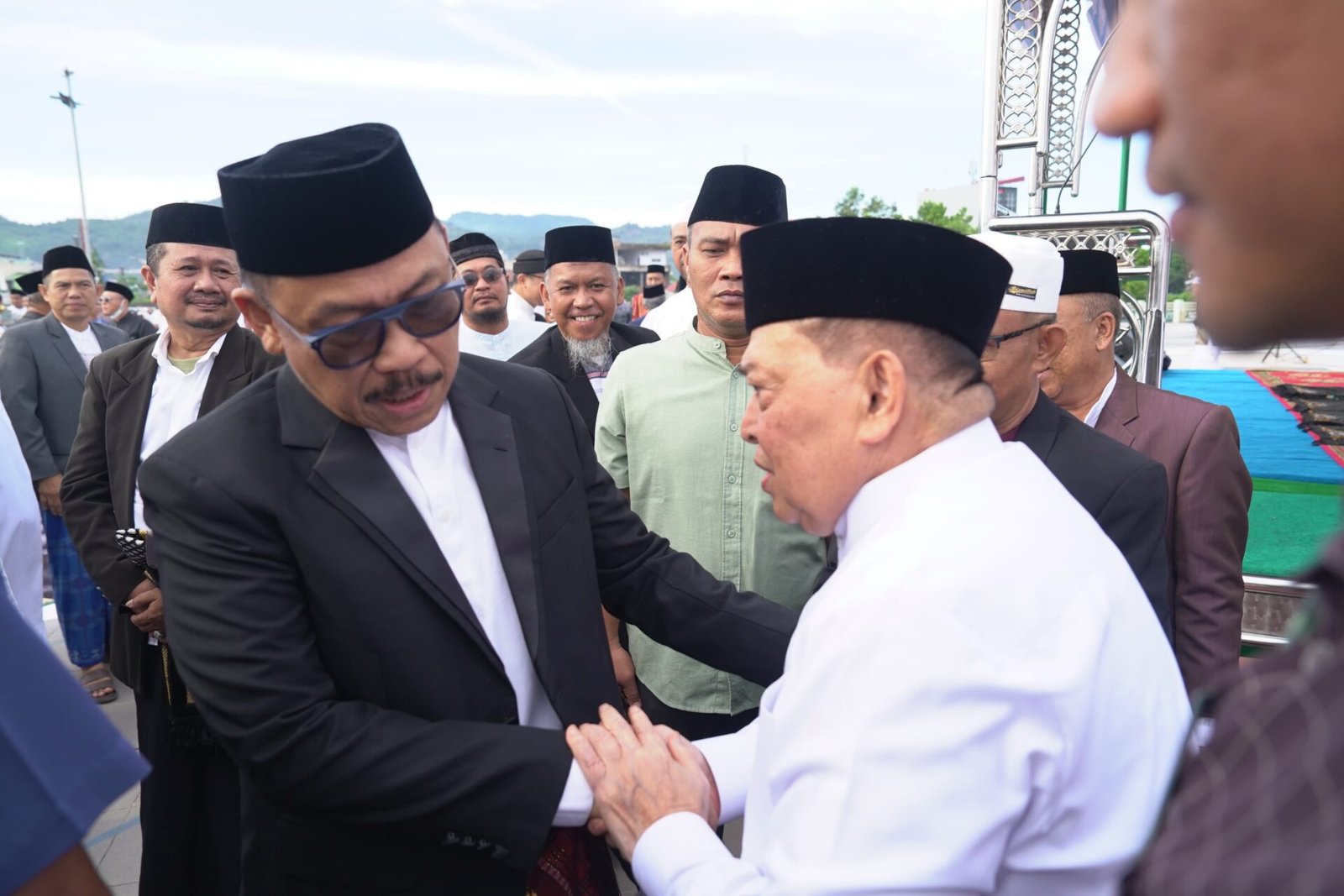 Mamuju – Gubernur Sulawesi Barat, Suhardi Duka (SDK) bersama Wakil Gubernur Sulawesi Barat Salim S Mengga, serta Forkopimda menjalankan salat Iduladha 1446 Hijriah di Anjungan Pantai Manakarra, Mamuju, Jumat, 6 Juni 2025.