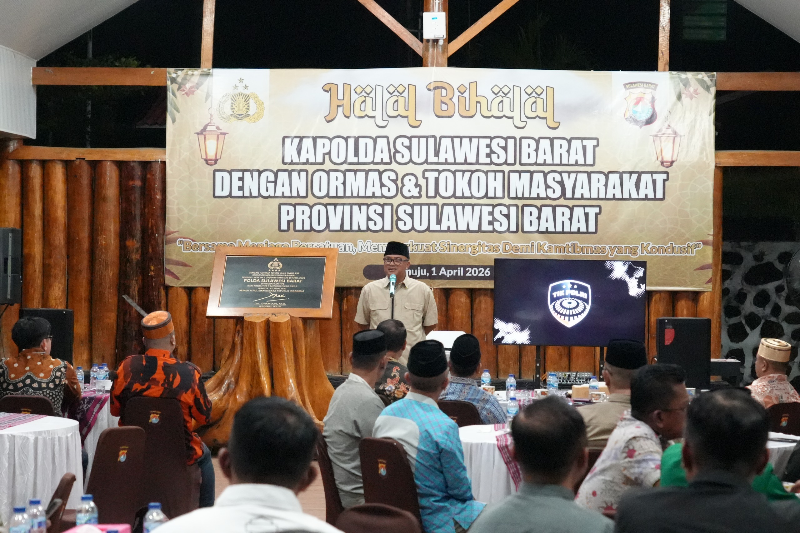 Mamuju – Kapolda Sulbar, Irjen Pol Adi Deriyan Jayamarta menggelar acara halal bihalal bersama Tokoh Masyarakat (Tomas) dan Organisasi Kemasyarakatan (Ormas) se-Kabupaten Mamuju di Baruga Lapangan Tribrata Polda Sulbar, Rabu (1/4/26).