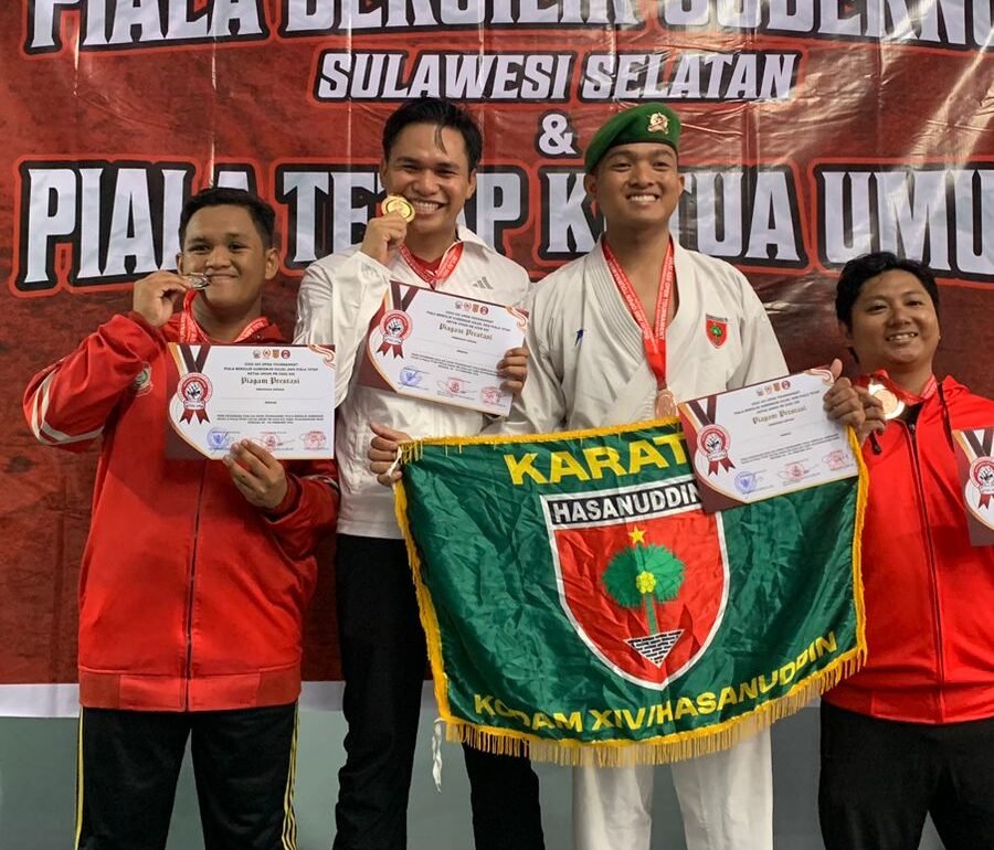 Makassar – Bripda Muh. Risaldi, personel Ditlantas Polda Sulbar, meraih medali emas kategori Kumite Perorangan +84 kilogram putra senior di kejuaraan karate Goju Ass Piala Gubernur Sulsel.