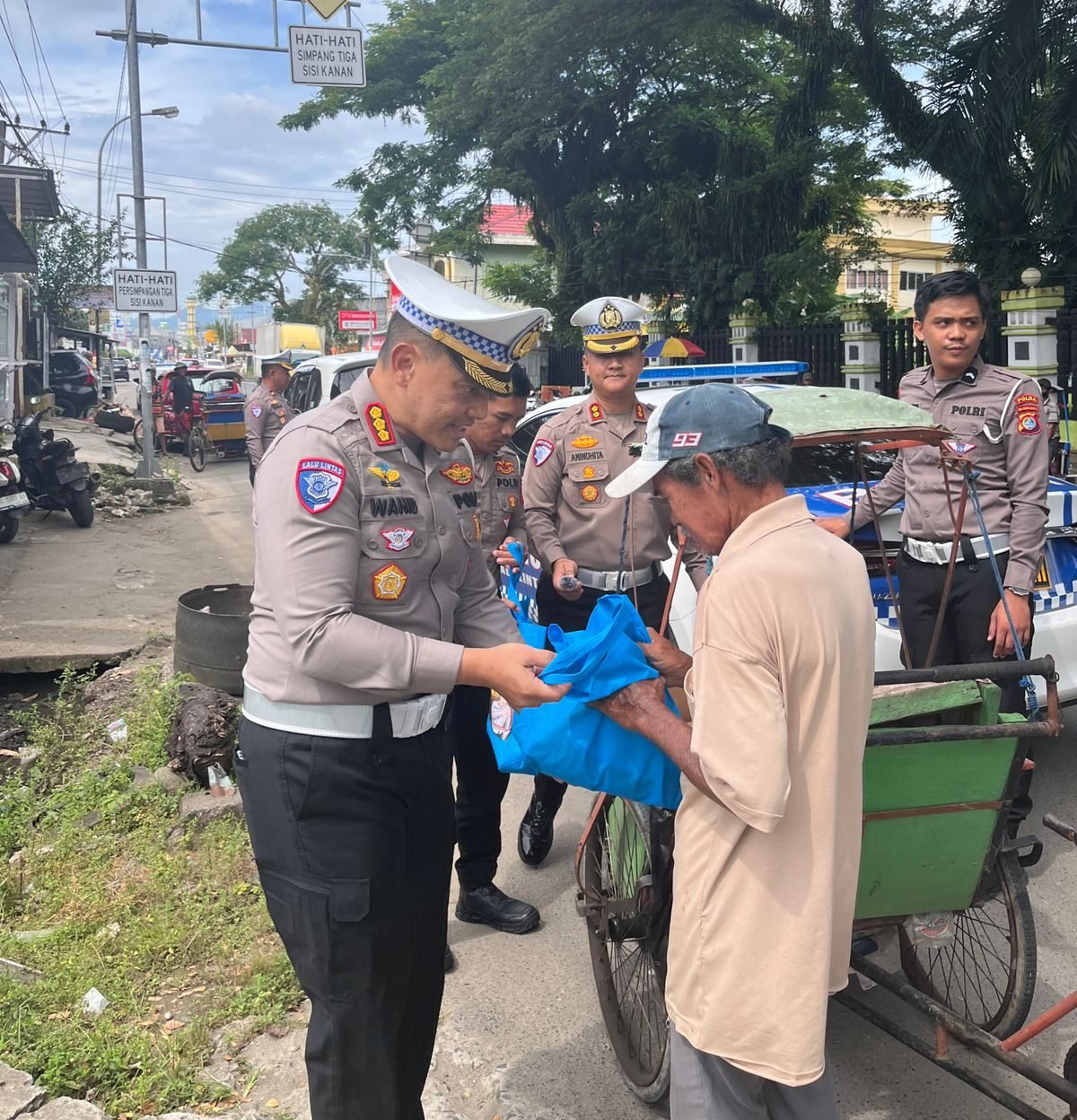 Mamuju – Dalam kegiatan Jumat berkah, Ditlantas Polda Sulbar menunjukkan kepeduliannya dengan melancarkan aksi kemanusian membantu masyarakat yang kurang mampu dengan berbagi sembako, Jumat (7/2/25).