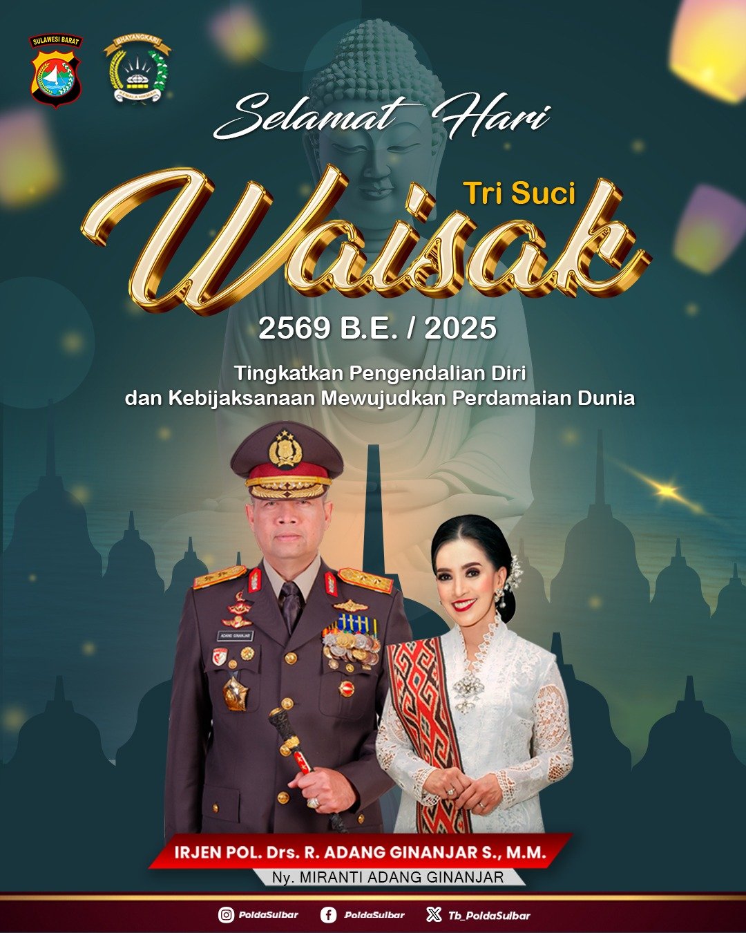 Ucapan selamat dan harapan damai ini disampaikan sebagai bentuk penghormatan Polda Sulbar terhadap perayaan keagamaan umat Buddha di Sulawesi Barat.