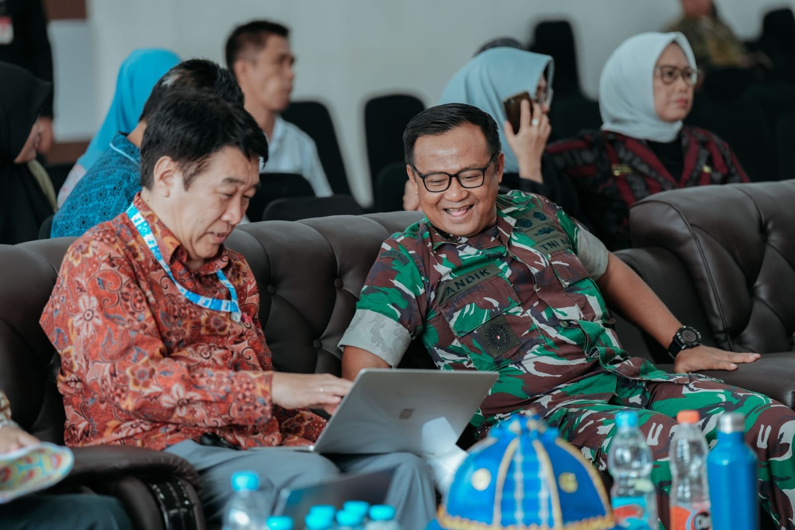 Dandim 1418/Mamuju, Kolonel Inf. Andik Siswanto berbincang hangat dengan perwakilan JICA, Mr. Shintani Naoyuki di sela-sela acara lokakarya.