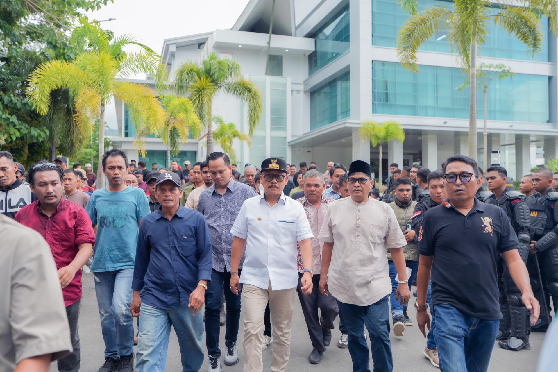 SDK datang langsung menemui massa aksi, setelah menolak perwakilan massa untuk berdialog dengan Gubernur.