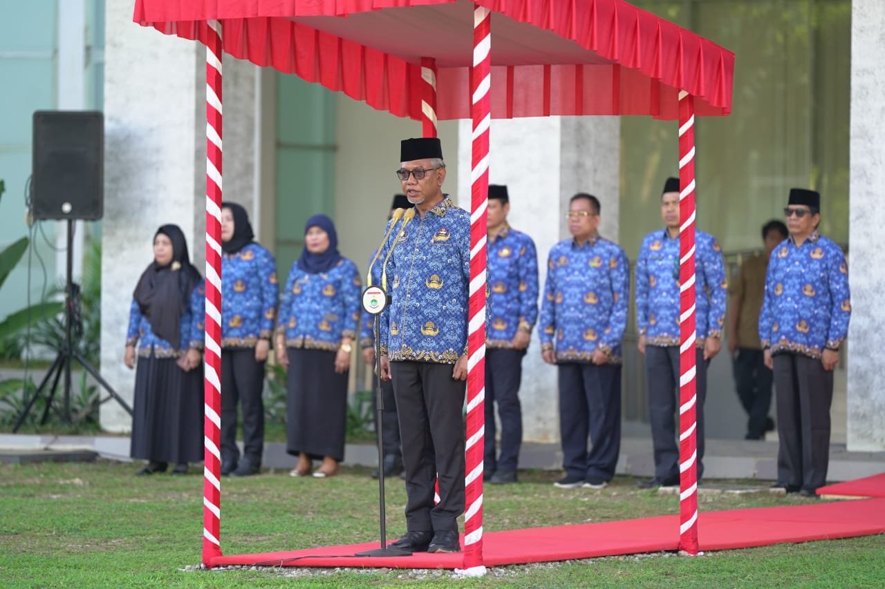 Sementara itu, sambutan bukan hanya sekedar dibacakan, tapi dibagikan teksnya kepada seluruh ASN Pemprov Sulbar.