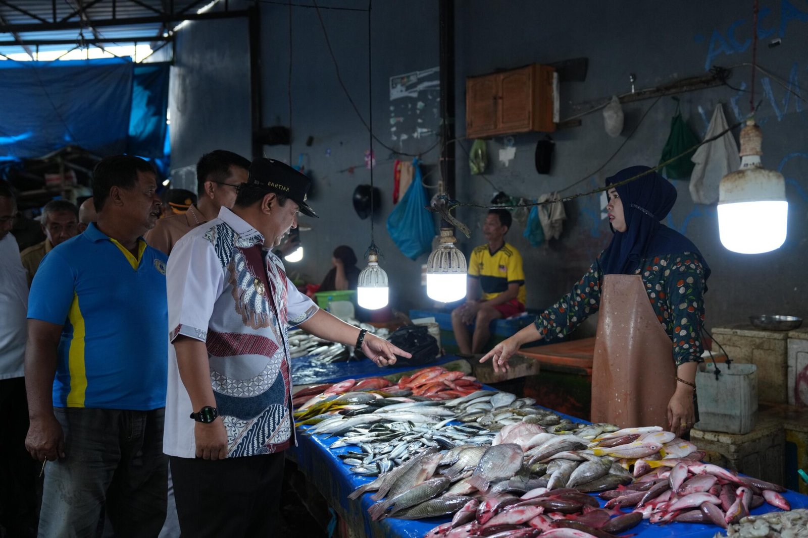 Mamuju – Pj. Gubernur Sulbar, Barat Bahtiar Baharuddin melakukan peninjauan perkembangan harga pangan di pasar tradisional Mamuju, Senin 3 Februari 2025.