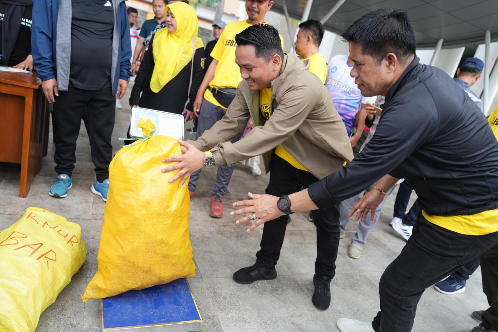 Sampah tersebut di kumpulkan untuk diserahkan ke bank sampah, uniknya mereka yang membawa sampah dengan bobot paling berat akan mendapat hadiah yang disiapkan oleh Pemkab Polman.