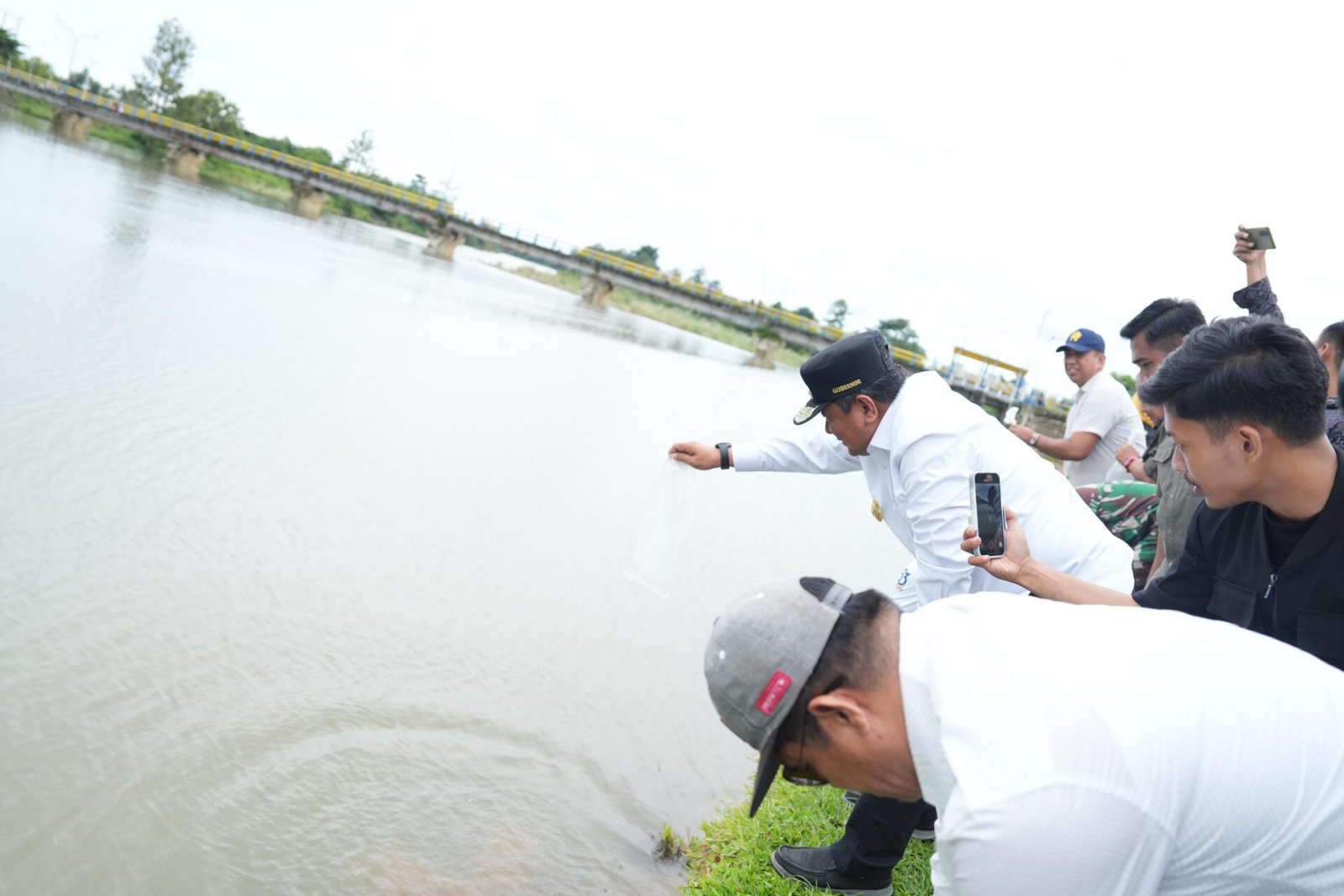 Polman – Pj. Gubernur Sulbar, Bahtiar Baharuddin melakukan penebaran bibit ikan nila di Bendung Sekka-Sekka, Kecamatan Mapilli, Kabupaten Polman, Kamis 30 Januari 2025.
