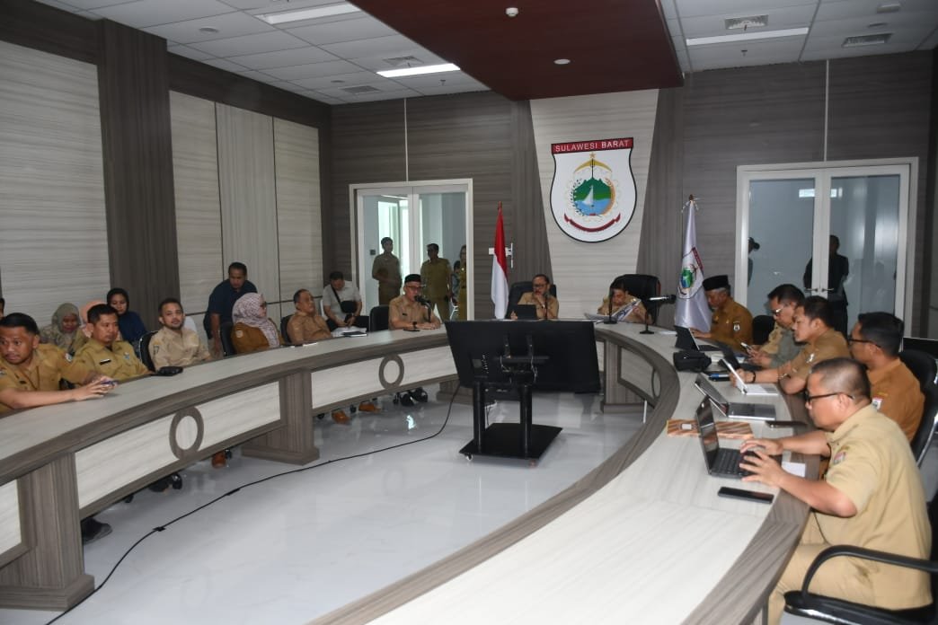 Rapat evaluasi dipimpin Gubernur Sulbar Suhardi Duka dan Wakil Gubernur Sulbar Salim S. Mengga di ruang oval Lantai 3 Kantor Gubernur Sulbar, Selasa 4 Maret 2025.