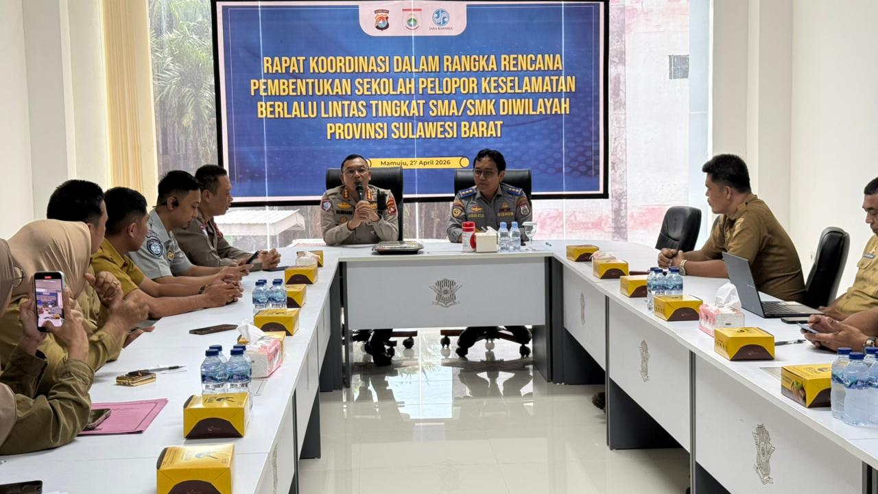Upaya tersebut mengemuka dalam rapat koordinasi antara Ditlantas Polda Sulbar dan Pemerintah Provinsi Sulbar di Ruang Rapat Lantai 3 Gedung BPKB Ditlantas, Senin (27/4). Forum ini mematangkan penyusunan nota kesepakatan sebagai dasar hukum pelaksanaan program.