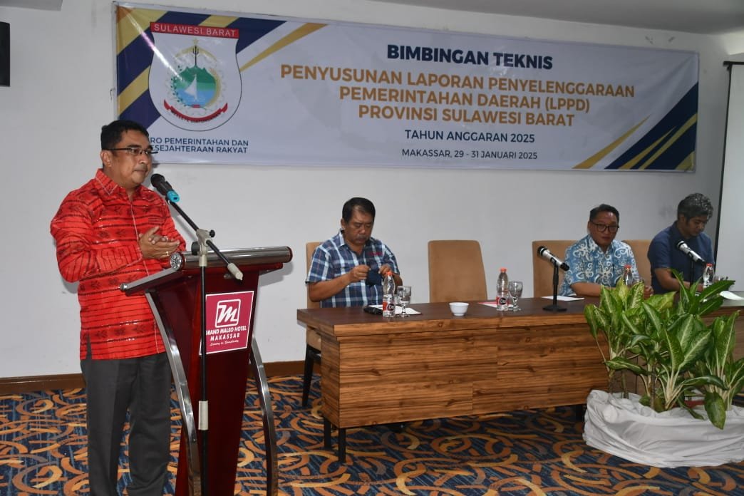 Mamuju – Pj Sekprov Sulbar, Amujib didampingi Karo Tapem Sulbar, membuka secara resmi Bimbingan Teknis Penyusunan Laporan Penyelenggaraan Pemerintahan Daerah ( LPDP) Provinsi Sulbar tahun anggaran 2025 di Hotel Maleo makassar, 29-31 Januari 2025.