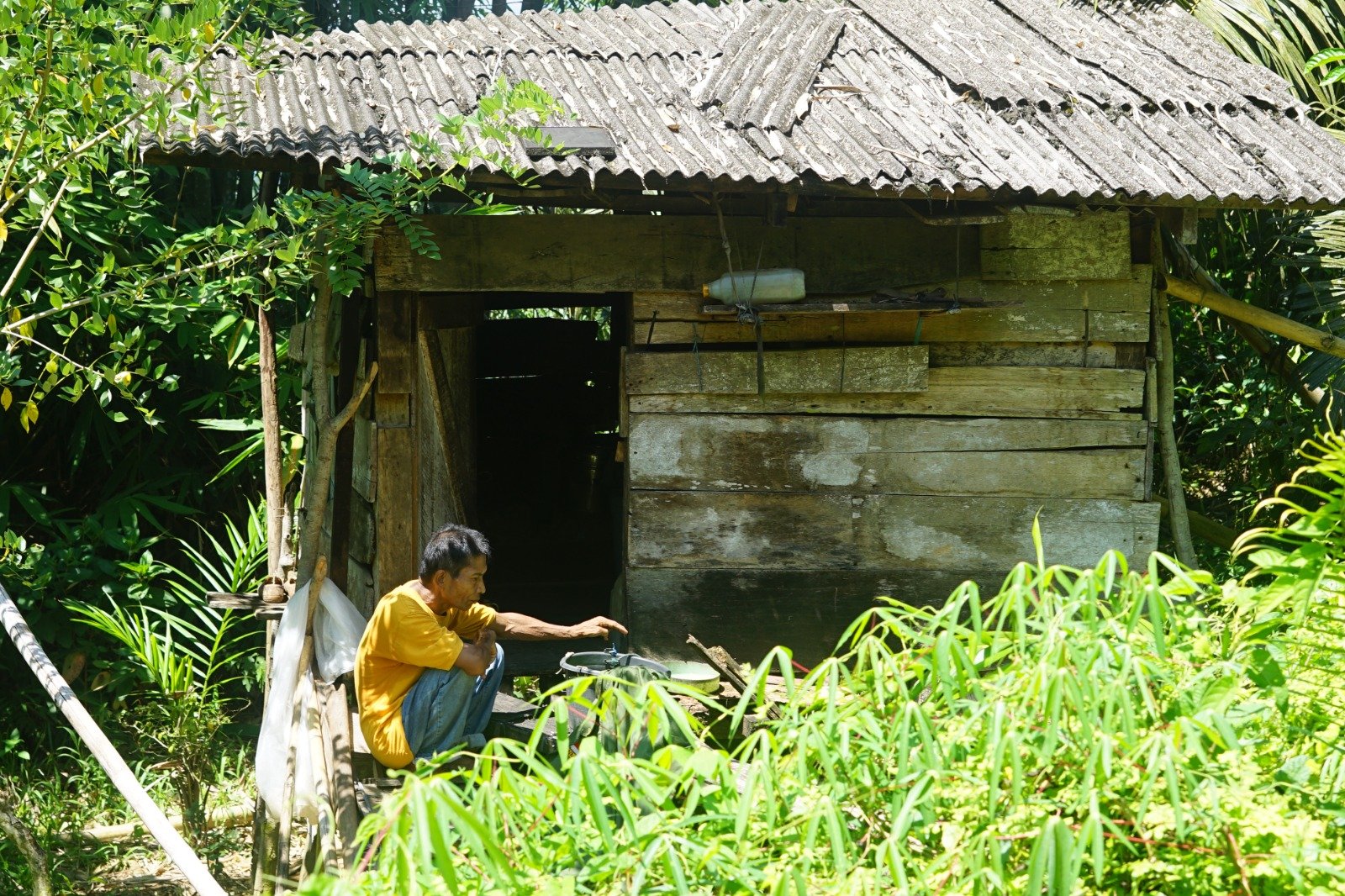 Di sanalah pria berusia 57 tahun itu hidup seorang diri. Ia menua, terlelap, dan menjamah hidangan dalam sepetak ruangan tanpa sekat. Tungku berabu dan periuk legam jadi saksi hidupnya yang memilukan.