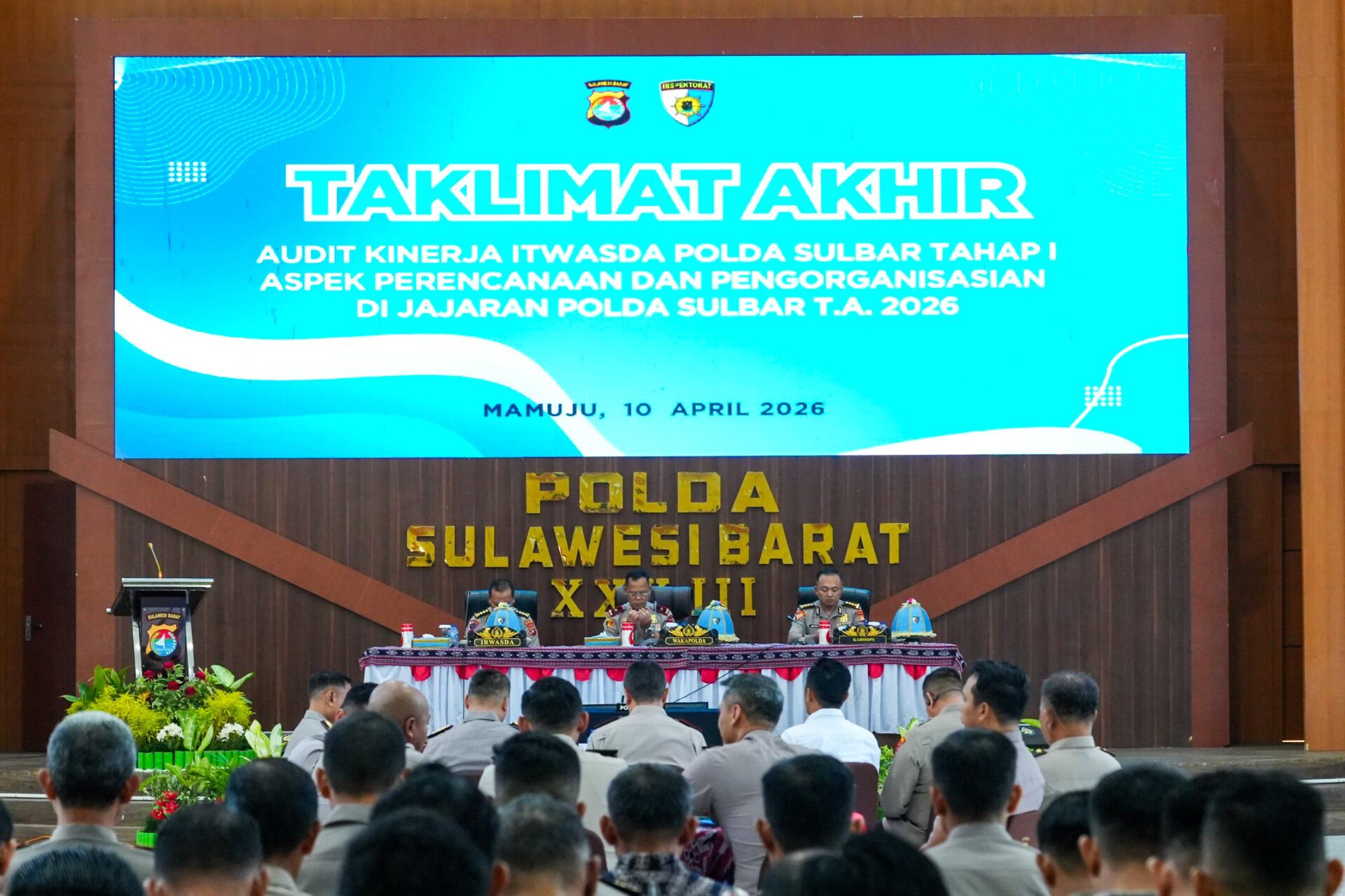 Sulbar – Wakapolda Sulawesi Barat, Brigjen Pol Hari Santoso secara resmi menutup kegiatan Taklimat Akhir Audit Kinerja Itwasda Polda Sulbar Tahap I Tahun Anggaran 2026, Jumat (10/4/26) di Aula Marannu Mapolda.